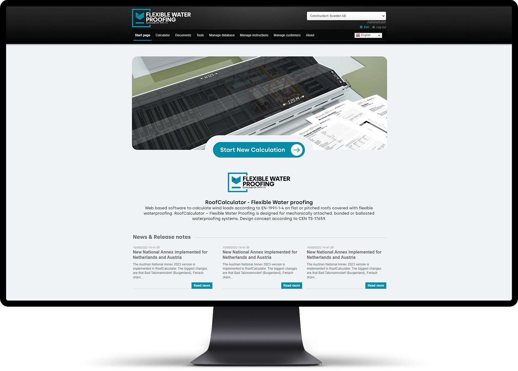 The water proofing systems can be singly-ply synthetic based membrane waterproofing systems or bitumen based multi-layer or single layer membrane waterproofing systems. With RoofCalculator – Flexible Waterproofing it is possible to perform professional wind load calculations with any material group or installation method. In the data base you set up the materials and connect them to preferred fixing type or installation method.