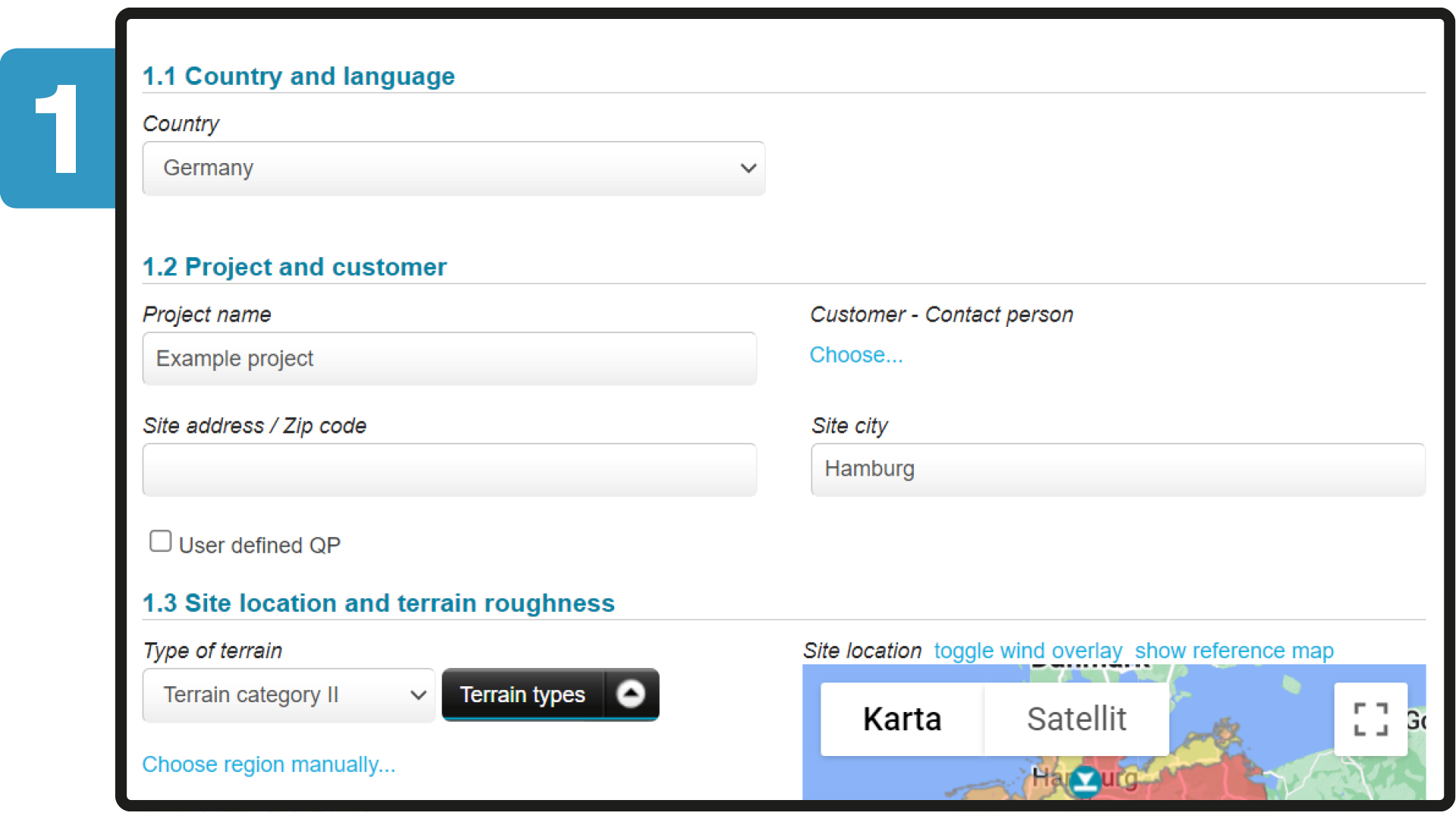 Roof Calculator guides the user to correct terrain type, wind speed and when it’s needed also the altitude for the project.